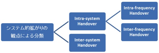 さらに、Intra-frequency Handover (同一周波数内ハンドオーバ)、Inter-frequency Handover(異周波間ハンドオーバ)に分類される。